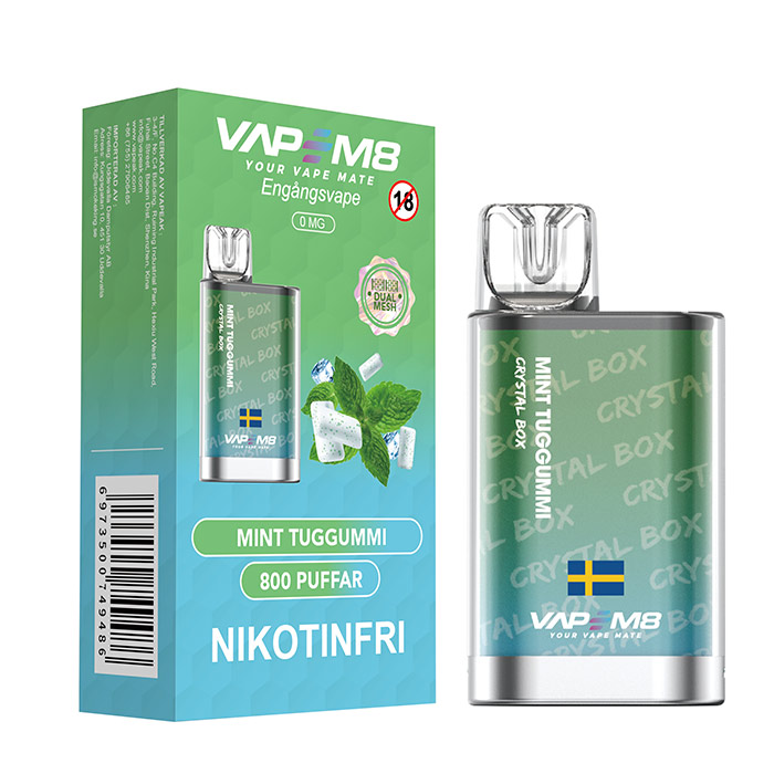 VapeM8 Crystal Box Dual Mesh - Mint Tuggummi (Nikotinfri, Disposable)